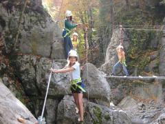 Eine reizvolle und kostengünstige Tour durch diese Naturschlucht. Ausgerüstet mit Helm, Klettergurt und zweifacher Sicherung für die fix eingebauten Drahtseile. 28 Stationen mit ca. 300m Gesamtlänge stehen zur Auswahl, in einer Höhe von 2 bis 12 Meter. Wir starten die Tour an den Ufern der Bergenzerache. Leichte Klettersteige, Schluchtüberquerungen, Hochseilelemente und Flying Fox sind in diesem Programm enthalten.