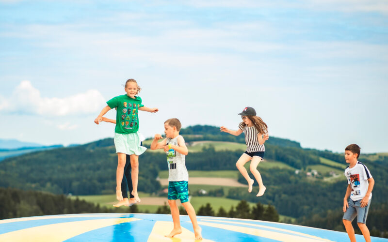 Im Eis-Greissler Erlebnispark in Krumbach kannst du Eis-Greissler nicht nur schmecken, sondern auch erleben. Auf einem der unzähligen Hügel der Buckligen Welt wartet ein einzigartiges Abenteuer für die ganze Familie. Ob auf dem Milchshaker, dem Rutschenturm oder auf den Hüpfpolstern – hier kommt jeder auf seine Kosten.