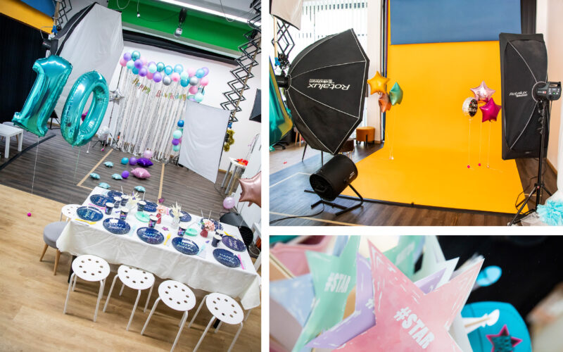 Hier dreht sich alles um Fotografie, Spaß und Kreativität. Du und deine Gäste werden von unserer professionellen Fotografin im Fotostudio mit Studiohintergründen und Blitzen fotografiert – Kinder ab 10 Jahren haben sogar die einzigartige Möglichkeit, selbst zur Kamera zu greifen und ihre eigenen Fotos zu schießen. Doch das ist noch nicht alles! Im Rahmen des Partyprogramms könnt ihr auch an spannenden Aktivitäten teilnehmen. Bastelt kreative Rahmen, um eure Lieblingsbilder zu präsentieren oder verschönert euch selber bei einem Make-Up Tutorial – oder wählt eine andere Aktivität, die euch am besten gefällt. Gemeinsam sorgen wir dafür, dass dein Geburtstag unvergesslich wird. Packt eure Kreativität und eure Lächeln ein, denn wir haben nur eine Kamera für euch alle!